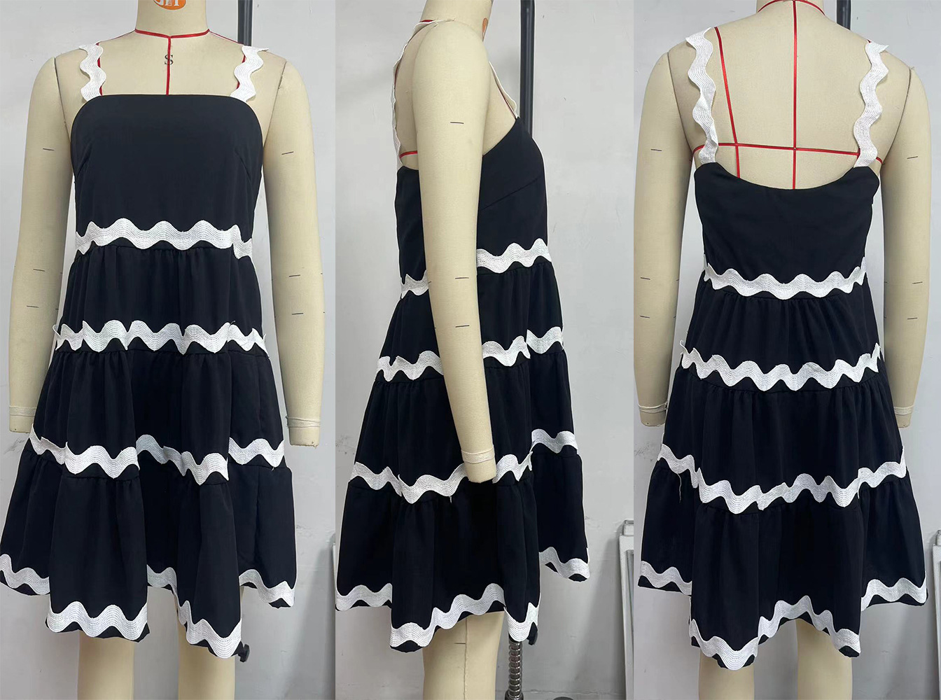 And Fresh Short Dress With Lace Detailing And Patchwork