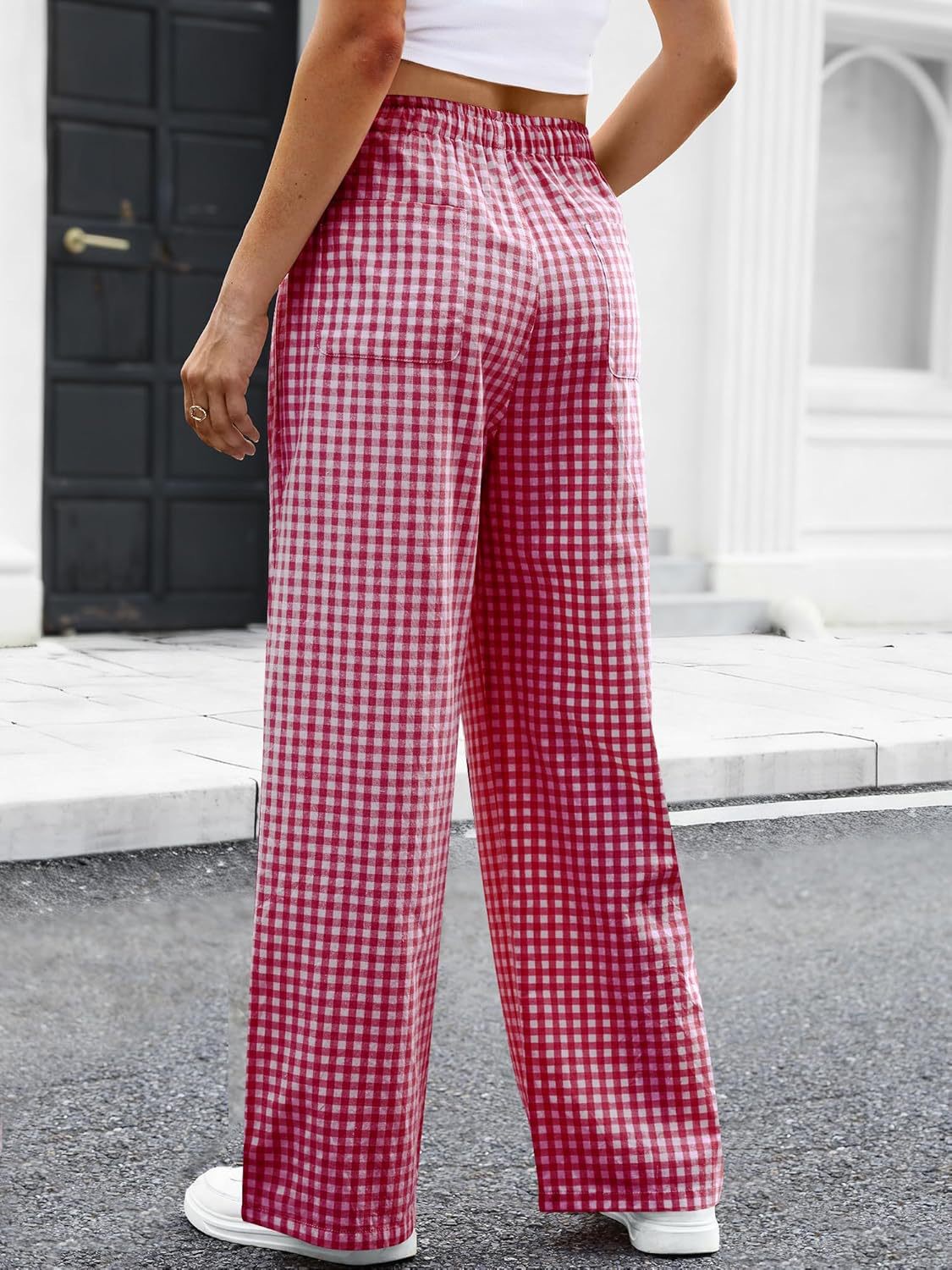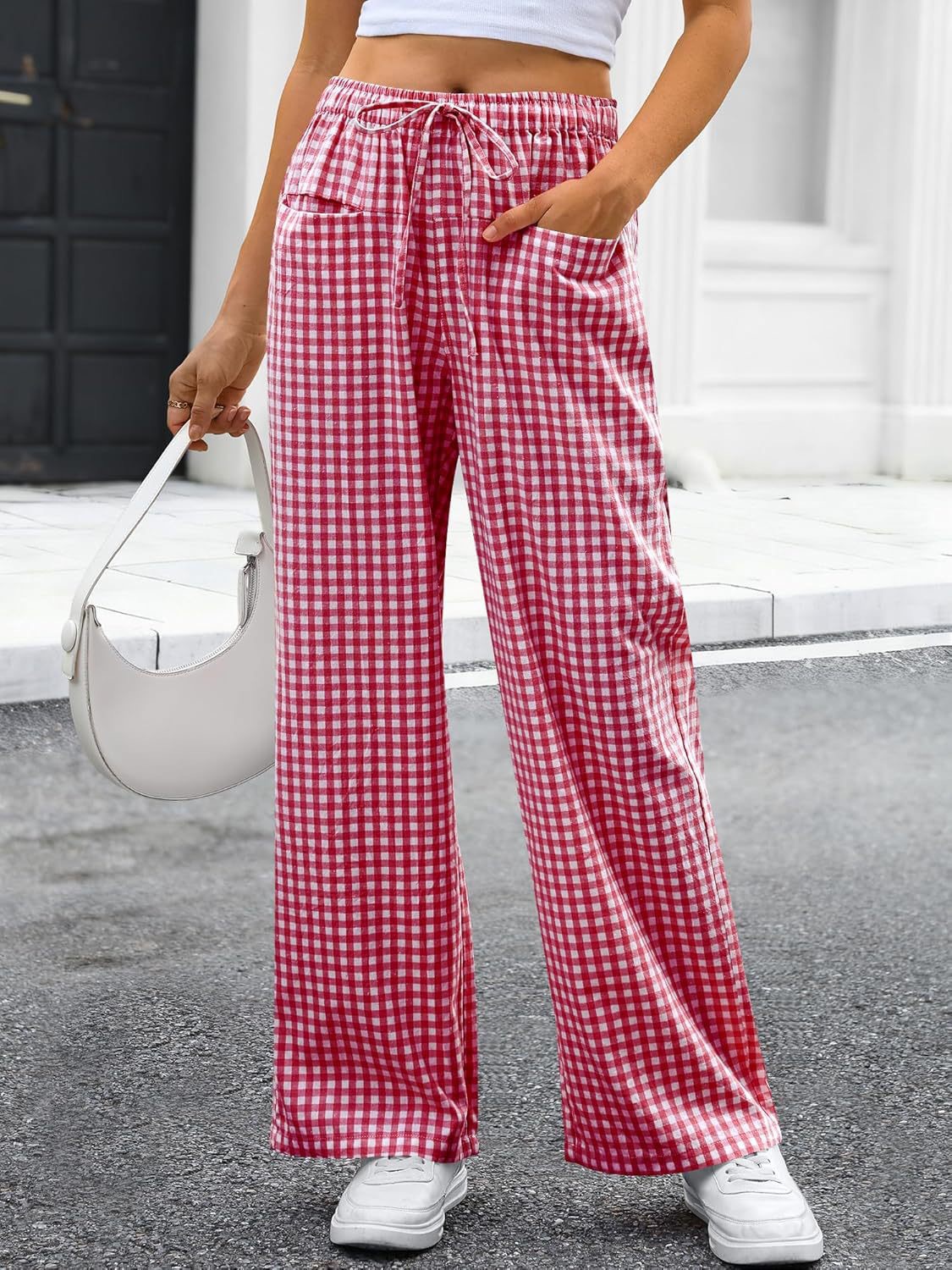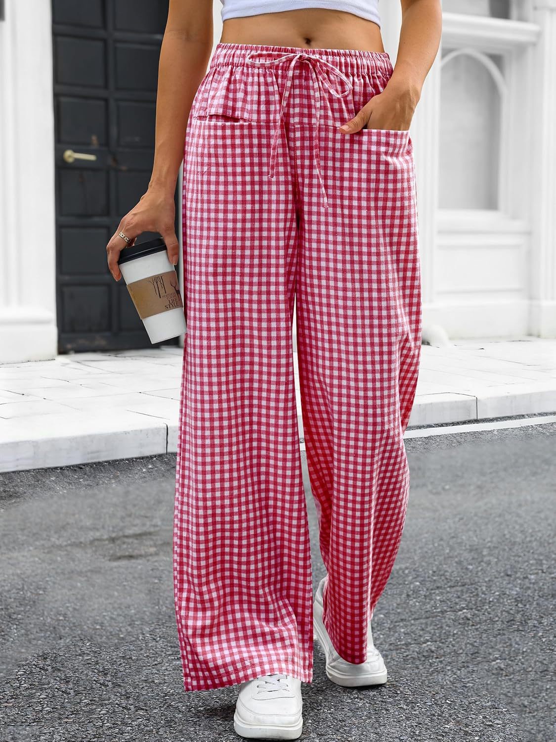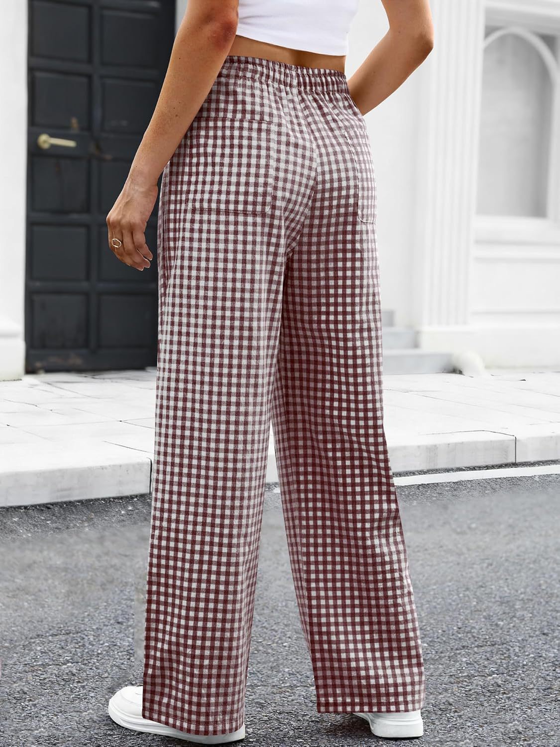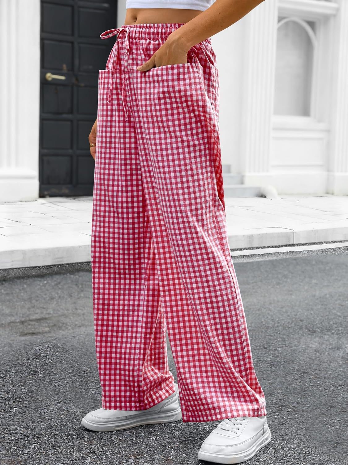 High-waisted Wide-leg Plaid Drawstring Loungeleisure Pants