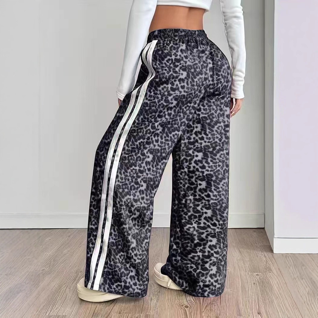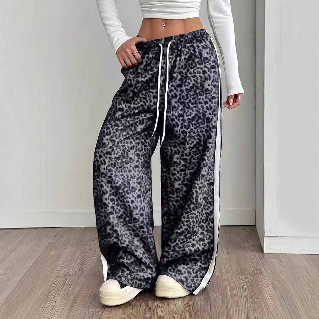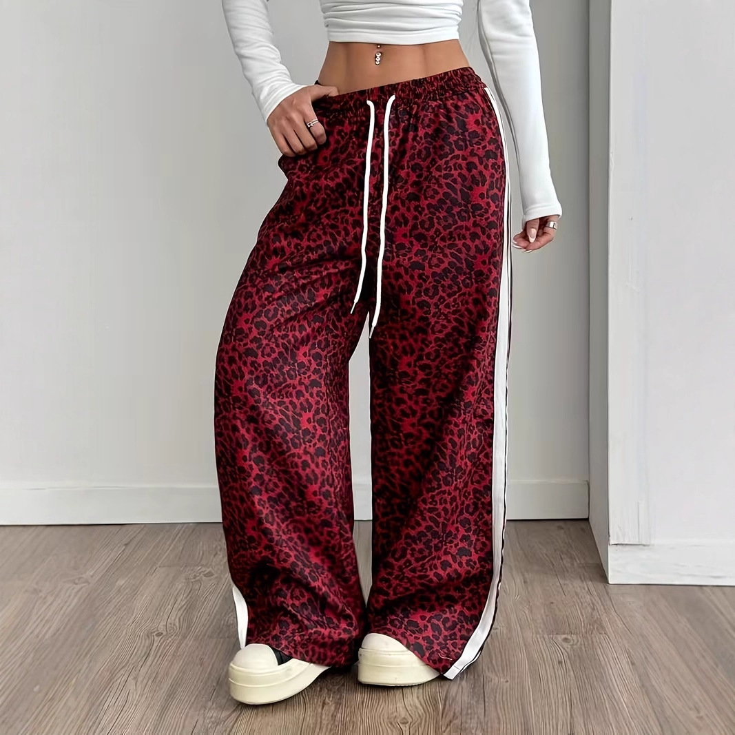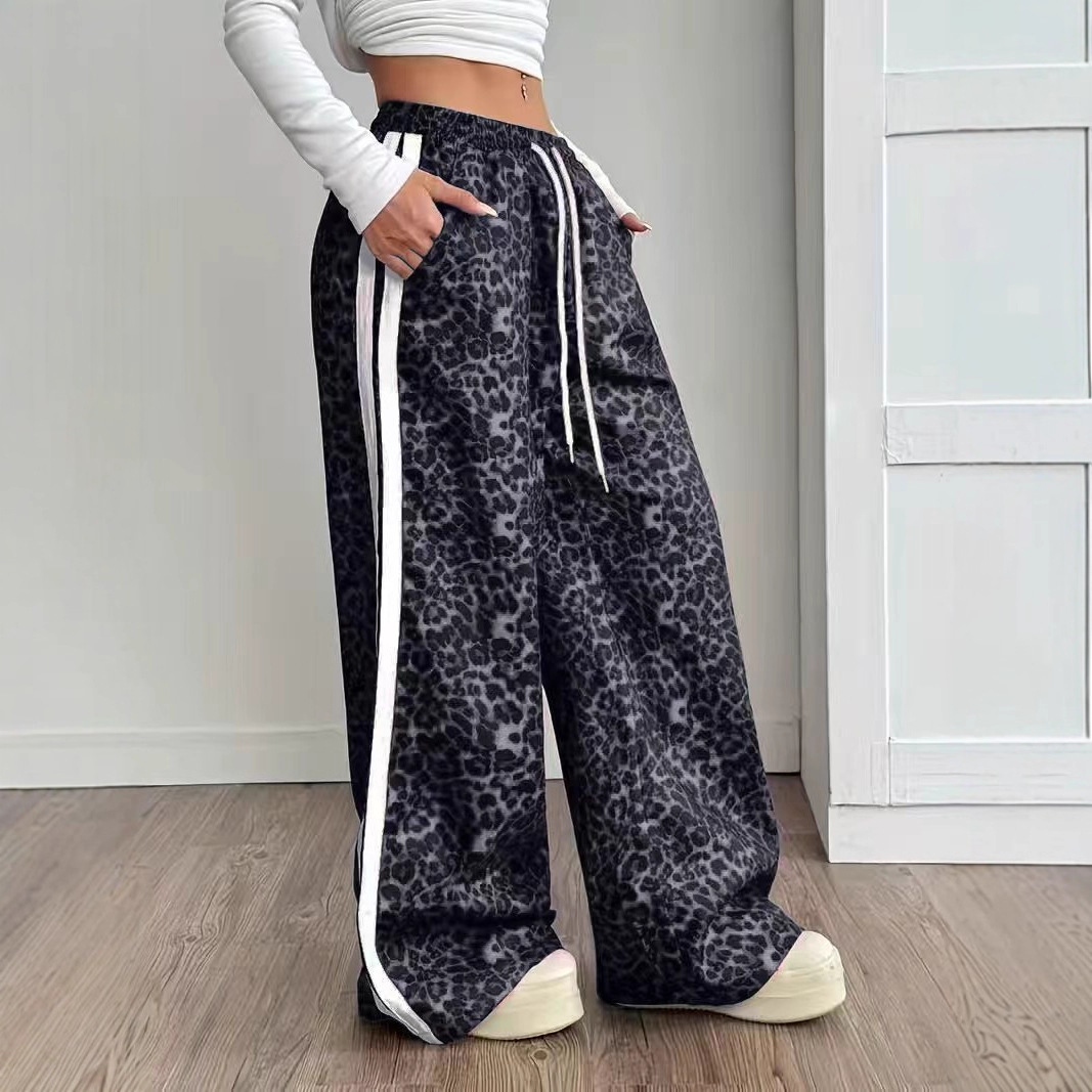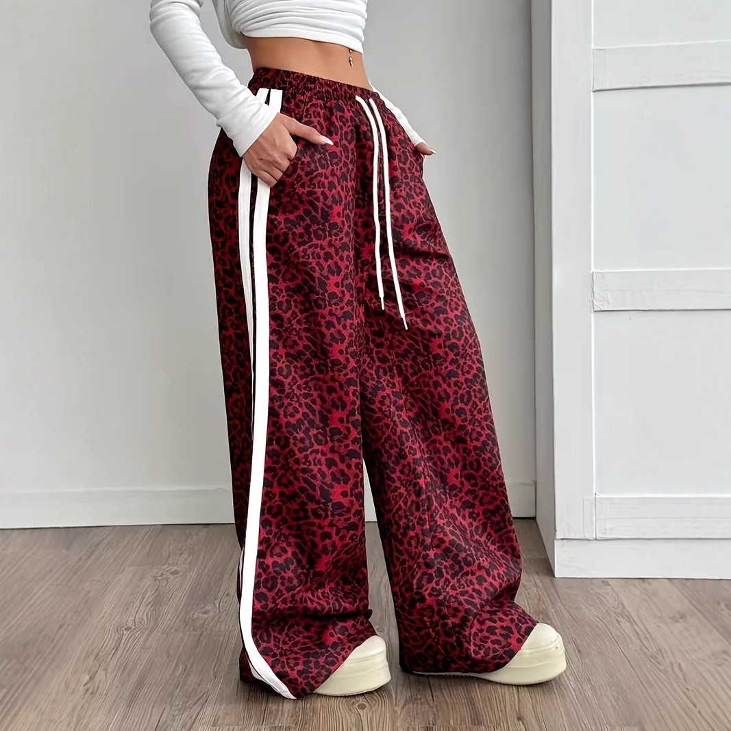 Stylish Leopard-print Patchwork Wide-leg Pants With A Relaxed Flowy Fit
