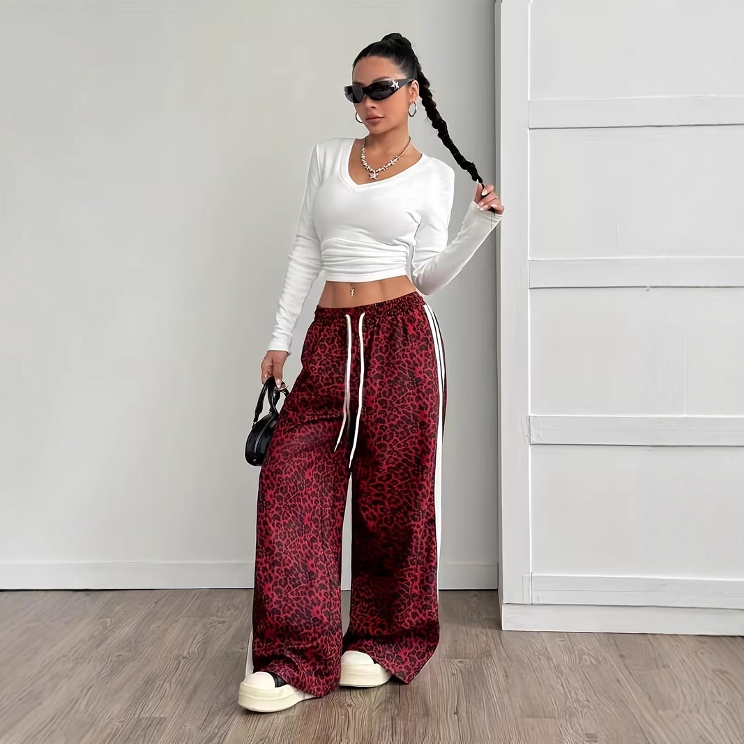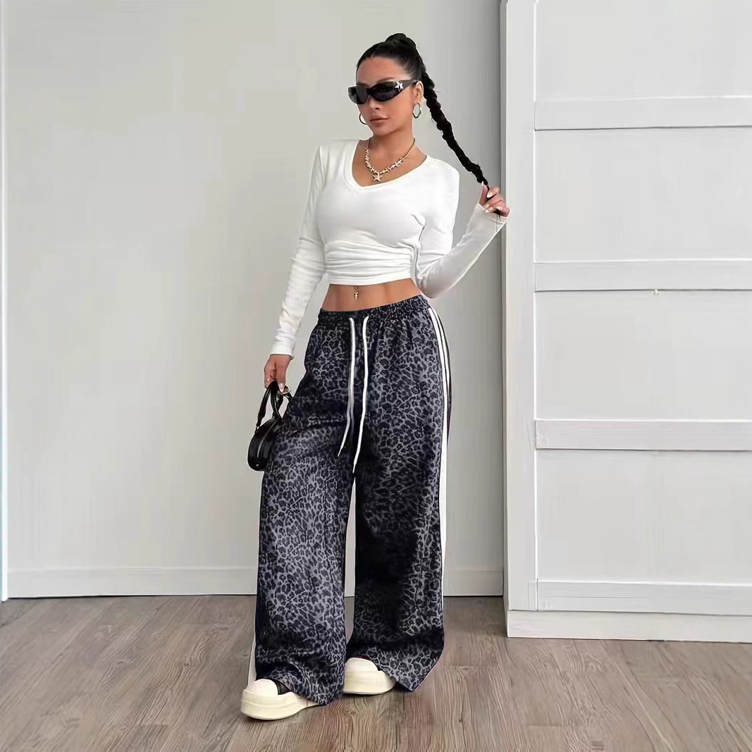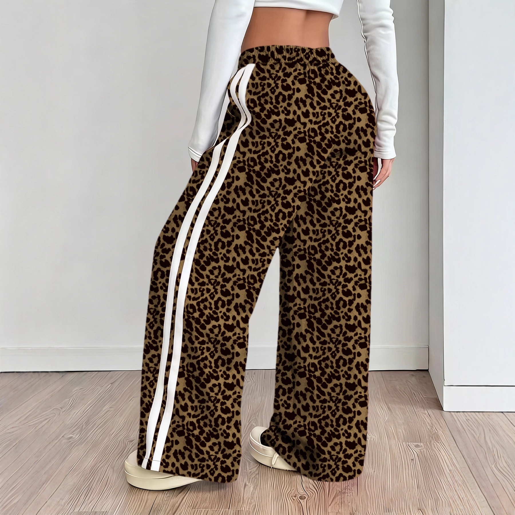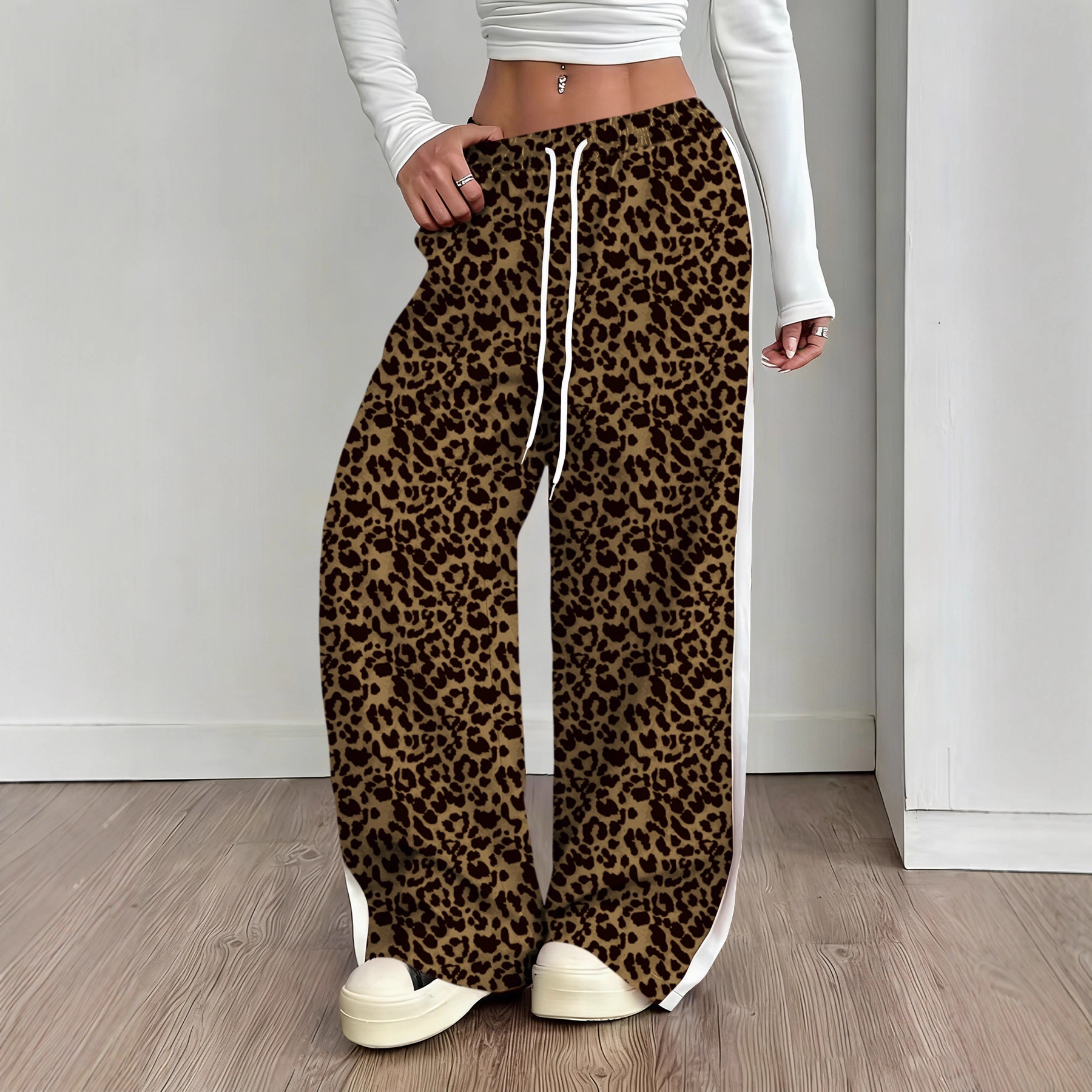 Stylish Leopard-print Patchwork Wide-leg Pants With A Relaxed Flowy Fit