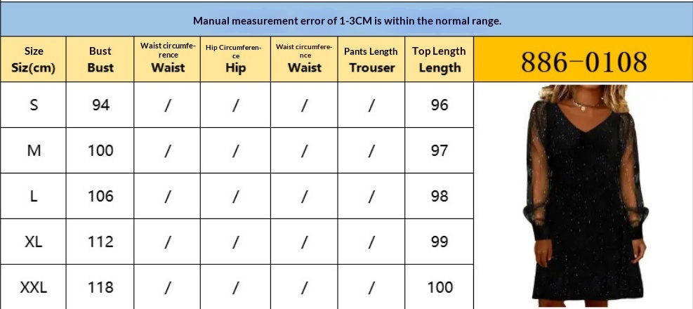 Womens V-neck Mesh Sleeve Sparkly Party Dress